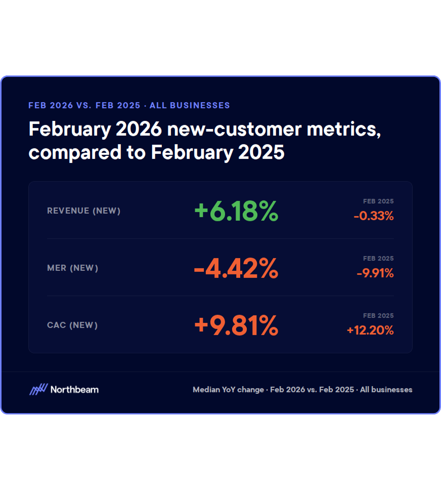 The narrowing first-time MER gap is the most actionable forward signal. In February 2025 new MER was nearly 10 points negative. In February 2026 it was 4.4 points negative. If that trajectory continues into March and April, the spring window for efficient acquisition may begin sooner and scale more cleanly than it did last year.