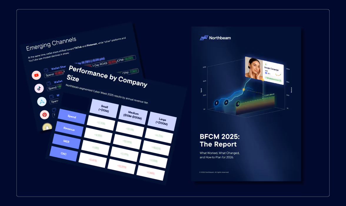 This report analyzes how ecommerce brands performed during Black Friday and Cyber Monday 2025 using aggregated Northbeam data. It examines changes in spend, revenue, efficiency, and customer acquisition costs to surface the patterns that defined this year’s peak season.
