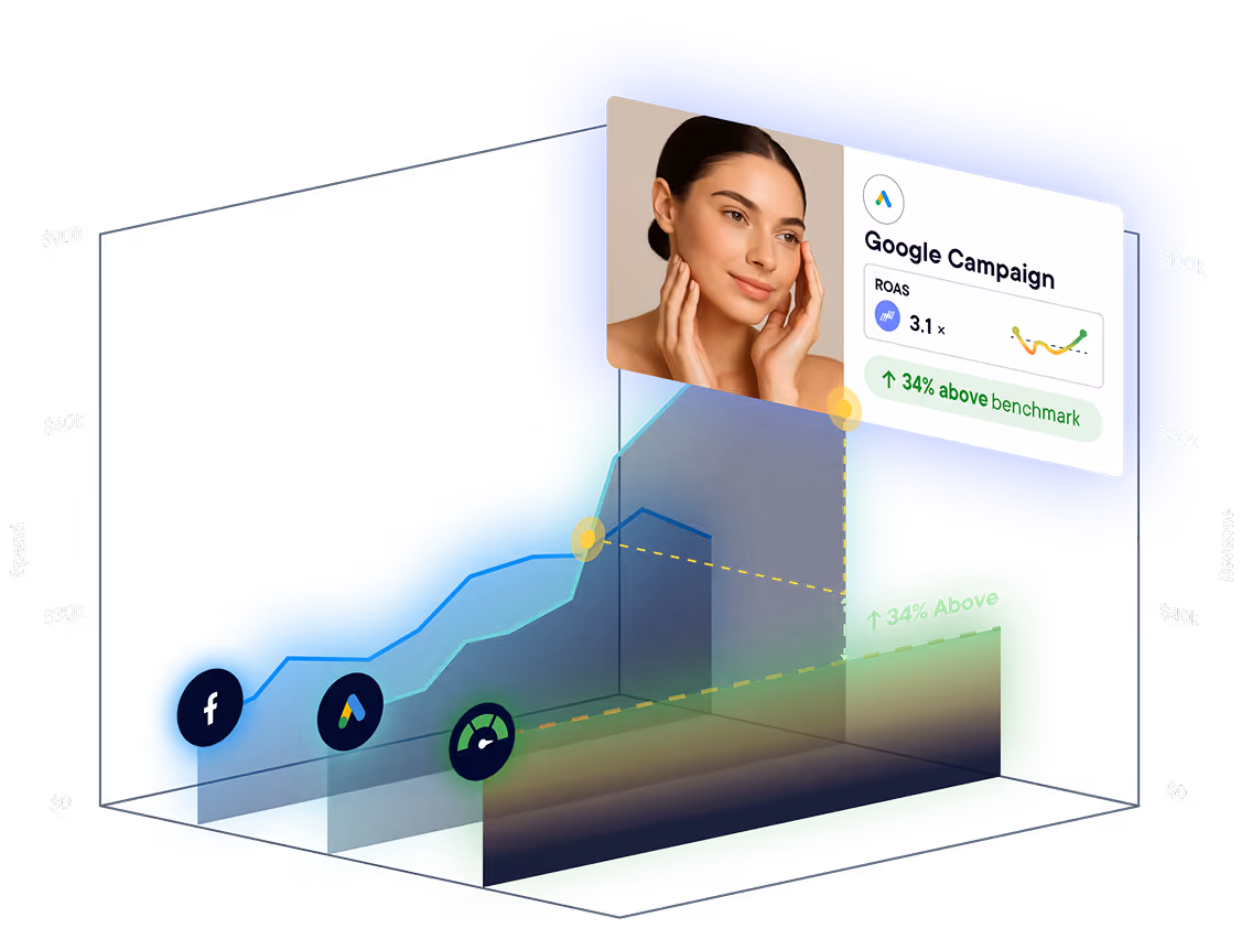 Quantify your goals into simple benchmarks for ROAS, MER, CAC and more.